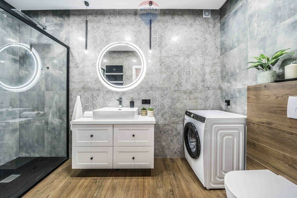 Łazienki z armaturą Massi i stelażami Geberit, oświetlenie LED,